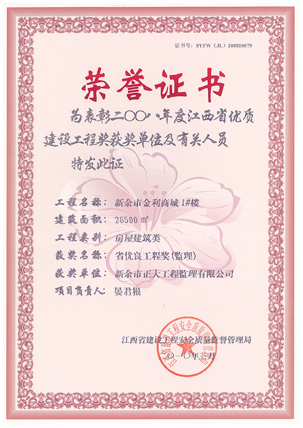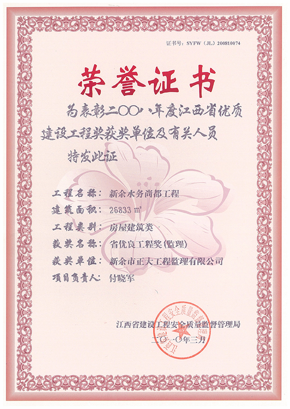 新余市正大工程監(jiān)理有限公司依托新余市建筑設(shè)計院,于1995年11月成立,是新余市開展監(jiān)理工作最早的監(jiān)理單位,本公司具有建設(shè)部核發(fā)的房屋建筑工程甲級監(jiān)理資質(zhì)、市政公用工程乙級監(jiān)理資質(zhì)、國家人防辦核發(fā)的人防工程監(jiān)理乙級資質(zhì)。我公司始終堅持“客戶至上、質(zhì)量第一、信守合同”的經(jīng)營理念;追求“為社會創(chuàng)造價值、為業(yè)主創(chuàng)造效益、為自身謀求發(fā)展”的經(jīng)營宗旨;遵循“守法、誠信、公正、科學(xué)、優(yōu)質(zhì)、高效”的工作原則,以雄厚的技術(shù)力量、完善的管理制度、豐富的監(jiān)理經(jīng)驗、良好的企業(yè)信譽(yù)迅速成為我市監(jiān)理行業(yè)的一支新銳力量!